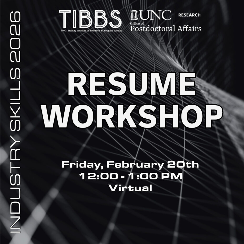 The UNC Office of Postdoctoral Affairs (OPA) and Training Initiatives in Biomedical and Biological Sciences (TIBBS) present a special spring installment of the Industry Skills Series focused on career readiness for graduate students and postdoctoral scholars. This short series emphasizes practical preparation for the job market, including understanding the North Carolina life sciences landscape, crafting effective resumes and elevator pitches, using LinkedIn strategically, networking with purpose, and building confidence through mock interviews. Designed for trainees who are actively preparing for career transitions, sessions combine expert guidance with hands-on practice and direct engagement with professionals across industry and related sectors. Registration is required for individual sessions, and space may be limited for in-person events.