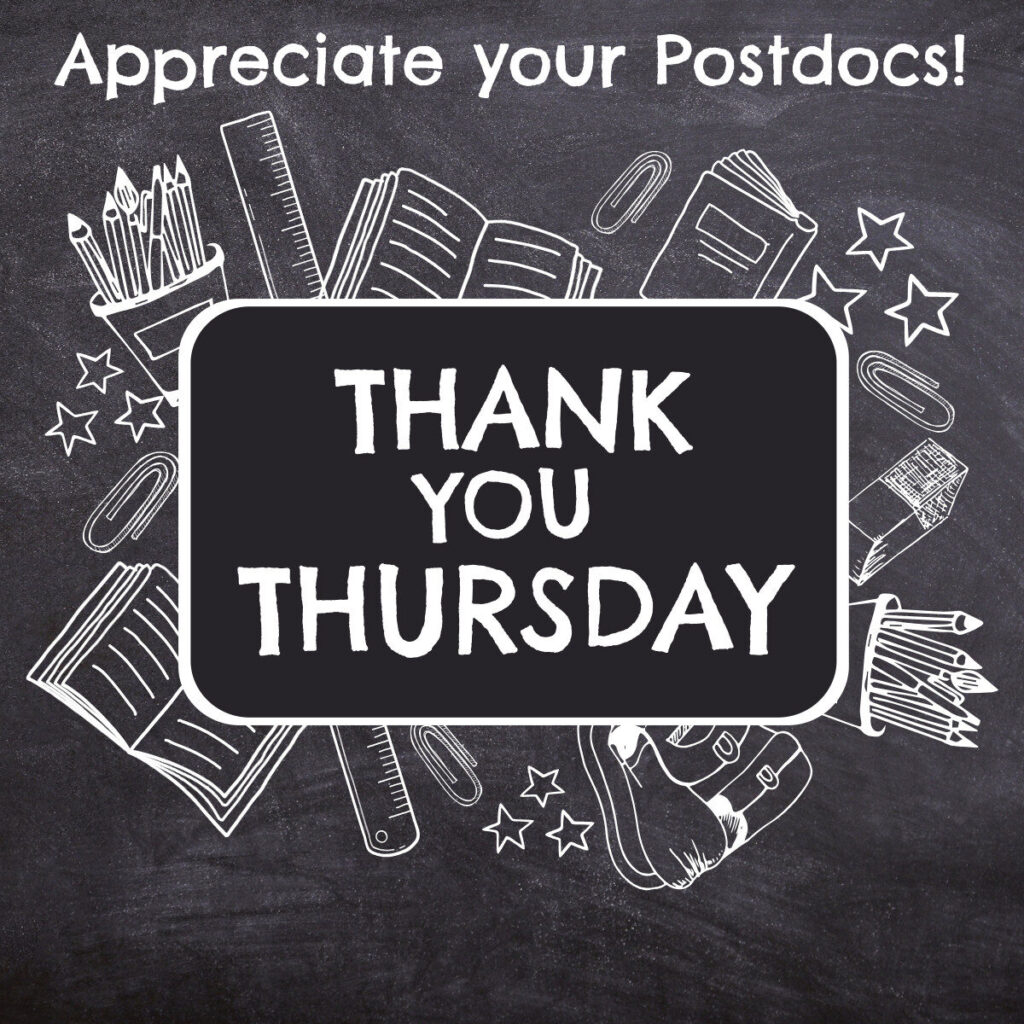 Details: “Thank You Thursday” is a day for faculty mentors to express their appreciation for the hard work and dedication of the postdocs in their research groups. Whether it’s hosting a small gathering, writing a thoughtful note, giving a shout-out on social media, or treating them to coffee or lunch, there are many meaningful ways to say “thank you.” Let’s use this opportunity to celebrate the talent, energy, and commitment that postdocs bring to our academic community!