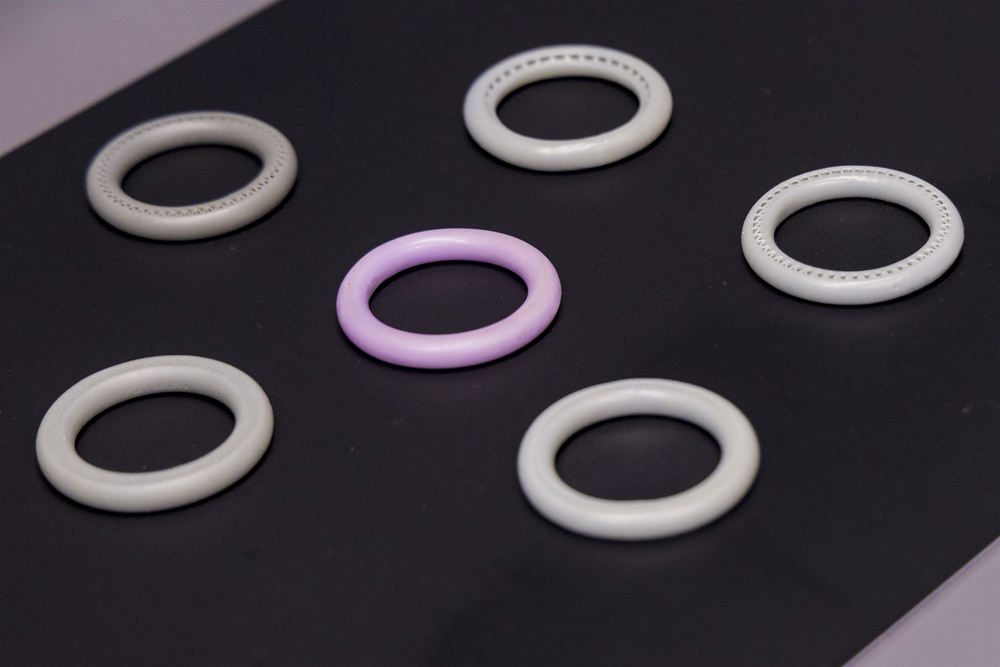 The 3D printing process has also allowed Benhabbour’s team to increase the surface area of the ring with unique patterns in the material that give it a beeswax-like look. This design releases the entire treatment dose that they incorporate into the ring.